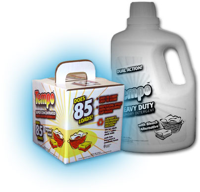 The compact CubeTM measures just 6 ½” x 6 ½” x 6 ½”, but it holds 1 full gallon of concentrated laundry detergent and does an amazing 85 loads! Just like a wine box, the corrugated CubeTM has a plastic bladder inside with a dispensing nozzle, which is fitted into a punch-out hole in the side of the box. The CubeTM comes with an easy to use measuring cup for perfect cleaning every time.
